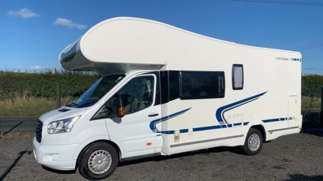 A 6 berth, manual motorhome with 4 beds – 2 x rear bunks, huge bed at the front and a double that is made from the dinette. Can sleep and extra child