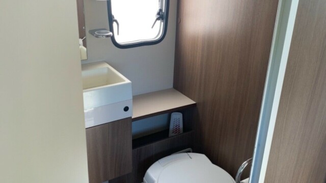 Ivor has a 127-litre fresh water tank which will supply the shower and kitchen area efficiently for a number of days before refilling is necessary. There are three 220-v electric sockets for when you have a mains hook-up and three 12-v sockets for use with the leisure battery. The well-designed integrated kitchen has a full-sized fridge with a freezer compartment, a three-ring gas hob, oven and grill, a sink with storage units, kitchen utensils, plus crockery and cutlery for seven people. The washroom contains a toilet, shower, washbasin and vanity unit.