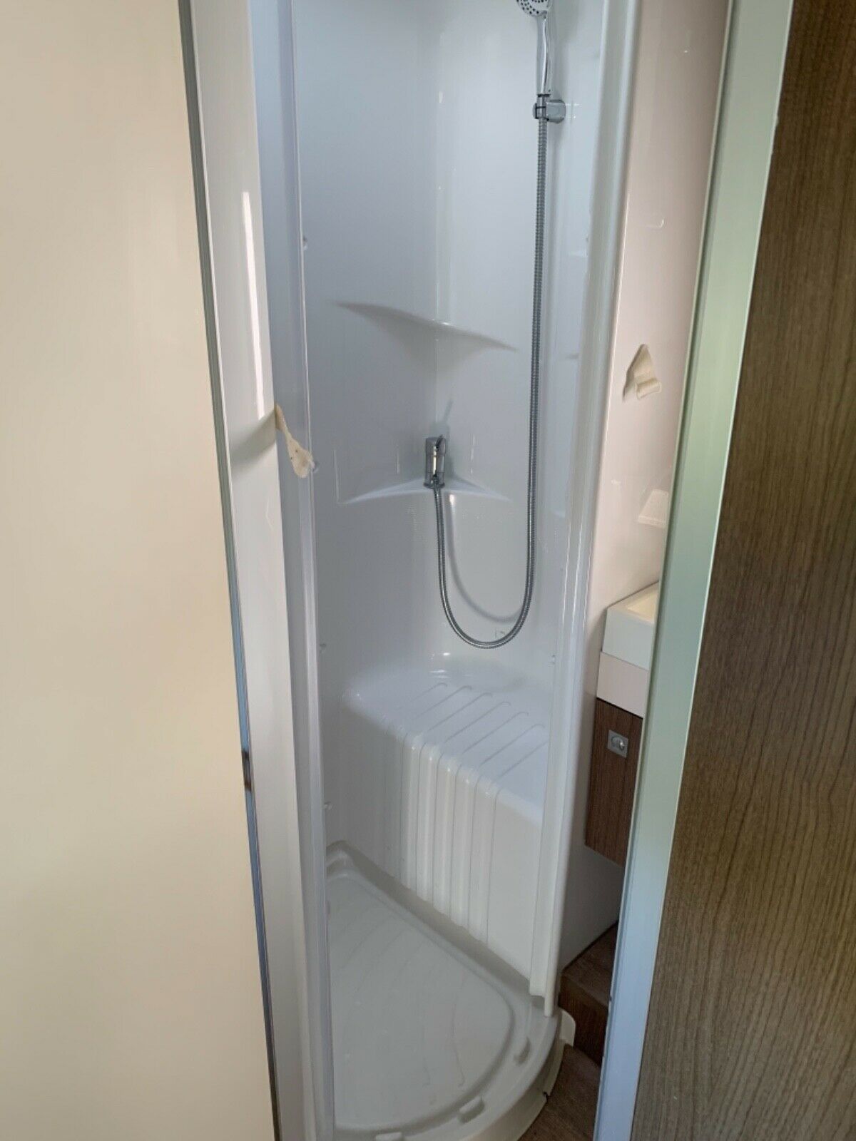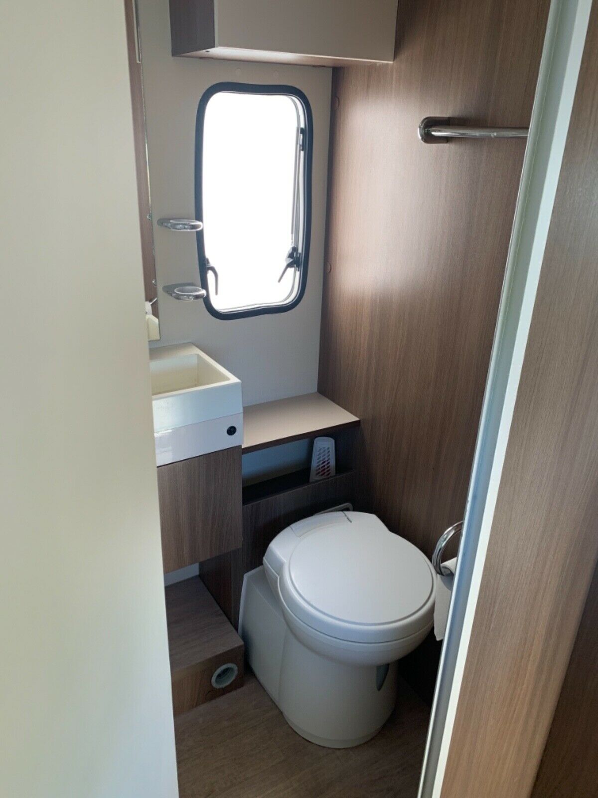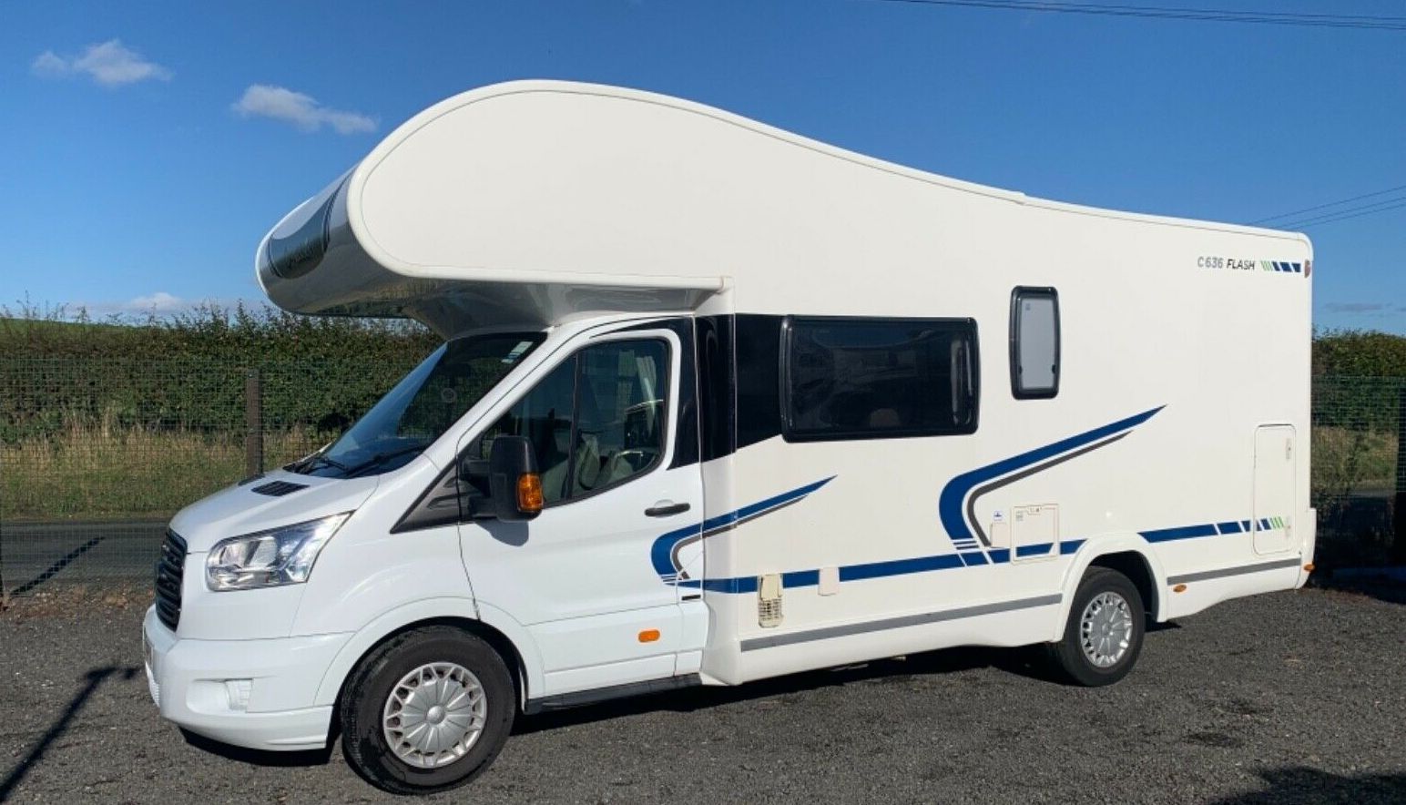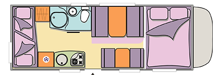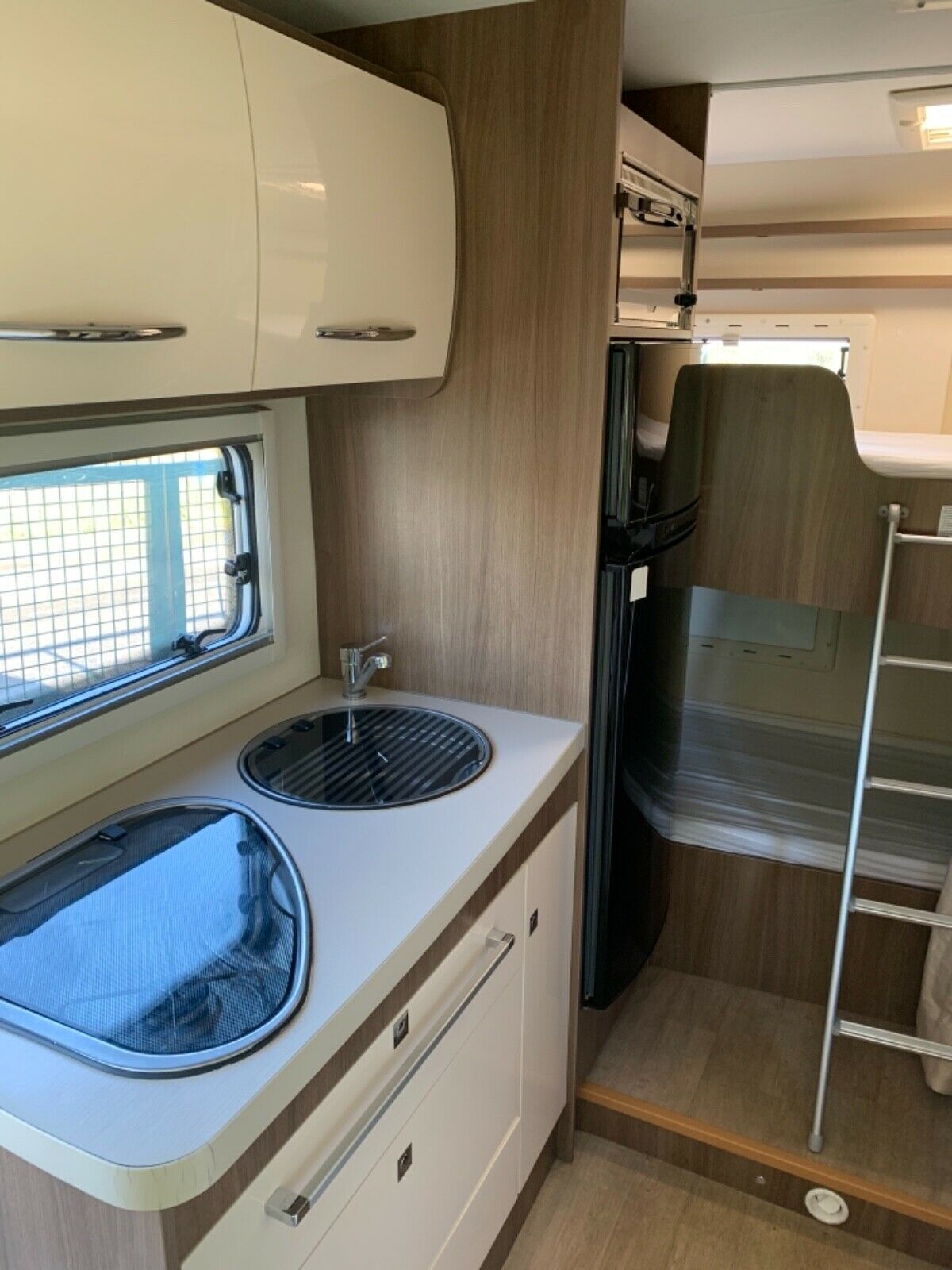 A 6 berth, manual motorhome with 4 beds – 2 x rear bunks, huge bed at the front and a double that is made from the dinette. Can sleep and extra child